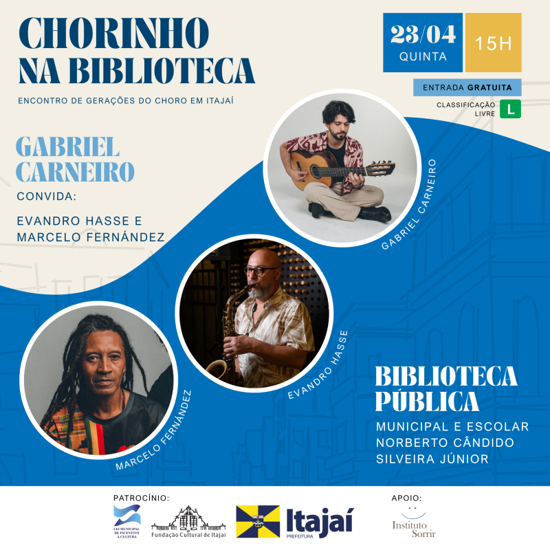 Após uma estreia de sucesso, o projeto “Chorinho na Biblioteca” segue sua programação em Itajaí com uma apresentação especial no dia 23 de abril, data em que se celebra o “Dia Nacional do Choro”, instituído em homenagem ao nascimento de Pixinguinha, um dos maiores nomes da música brasileira.